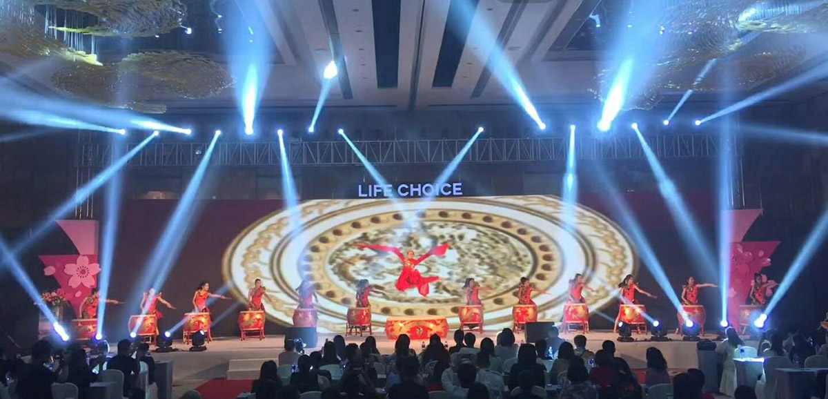 鼓舞在遠古時期,鼓被尊奉為通天的神器。距今已4400多年歷史。原創(chuàng)樂曲《鼓舞傾城》寓意——鼓舞聲威,萬象傾城。南城會展大酒店千人宴會廳演出案例